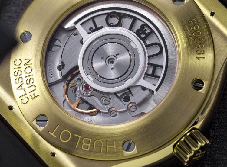 While Hublot does have a stable of in-house movements, including time-only calibres, the Swiss made fake Hublot Classic Fusion watches are mostly Sellita powered. So it’s no surprise the Classic Fusion Original 38 mm and 42 mm are powered by the HUB1110, which is actually a Sellita SW300-1 fitted with a Hublot-branded rotor. (The 33 mm model is powered by the HUB2913, probably an ETA quartz movement.)