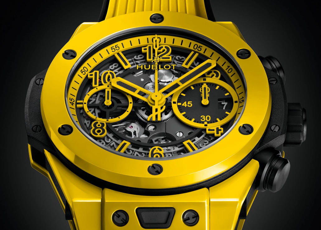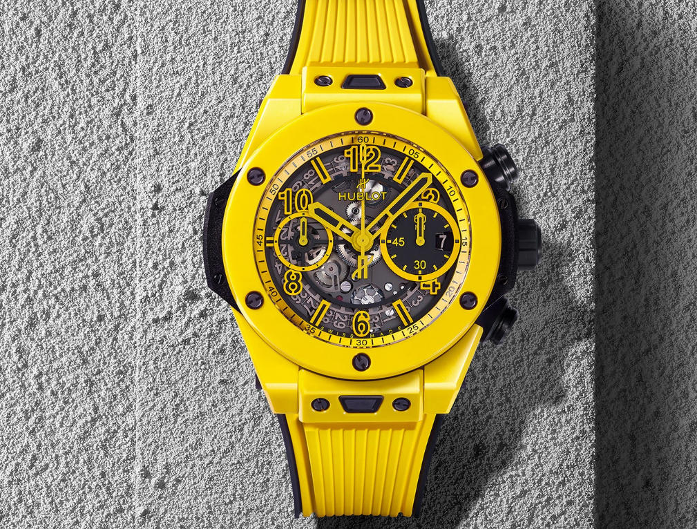 It took four years of development for top replica Hublot watches to perfect a technique that produces a brightly coloured, particularly hard-wearing ceramic without burning the pigment in the process. Having led off with red in 2018, and later a blue, yellow was the inevitable next step along the primary colours.